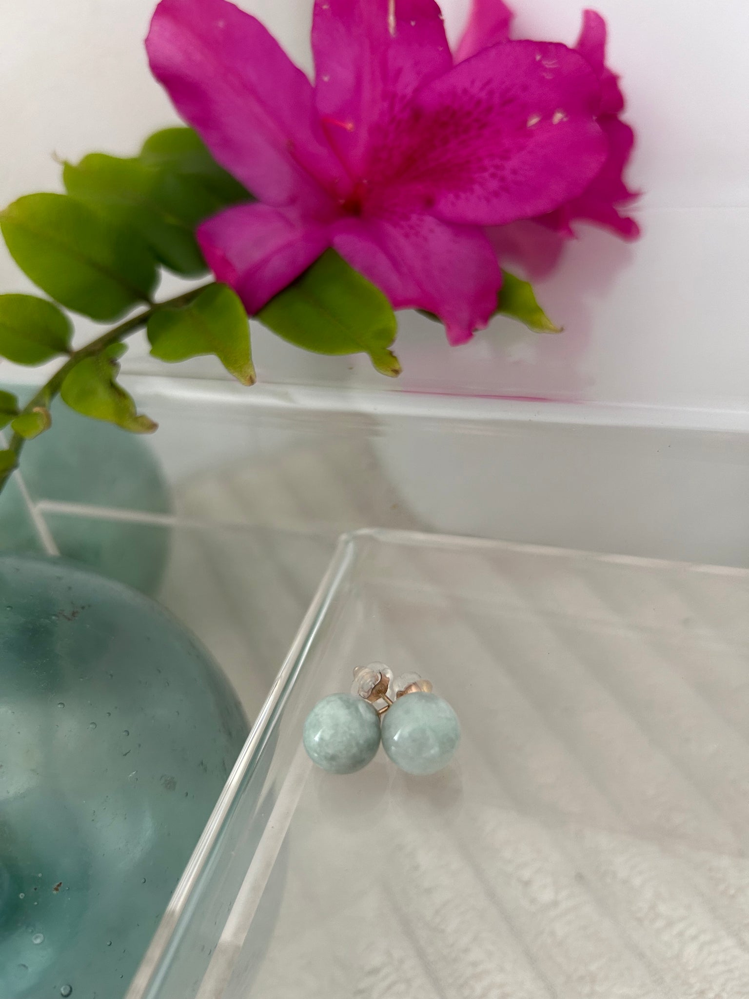 Beautiful, natural Burma jade. Each set is individual and unique, just like you. Colors range from green,blue,gray,white. 10MM in size.