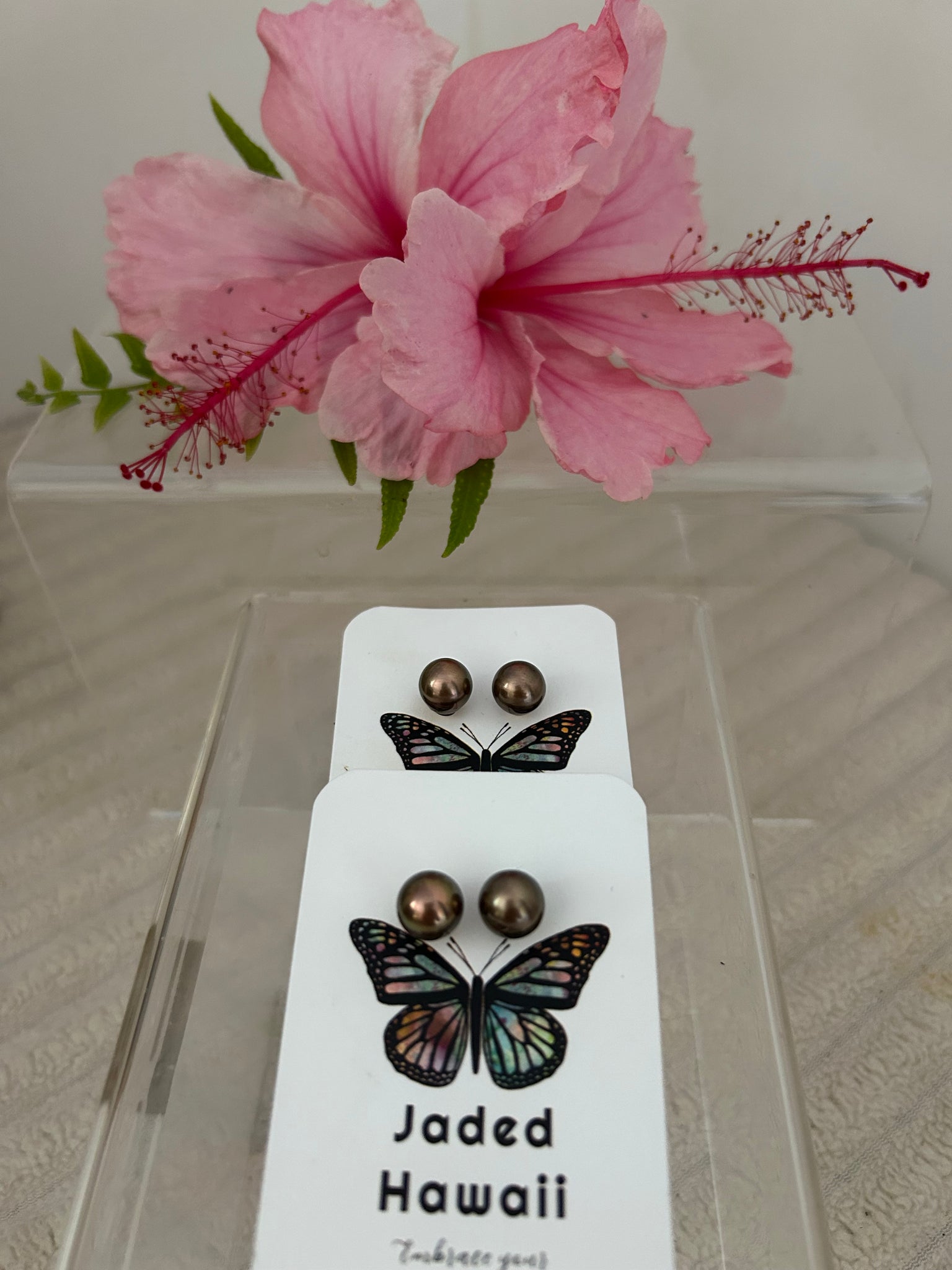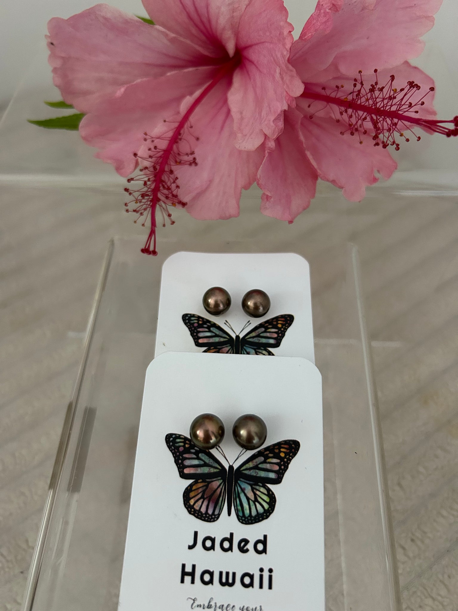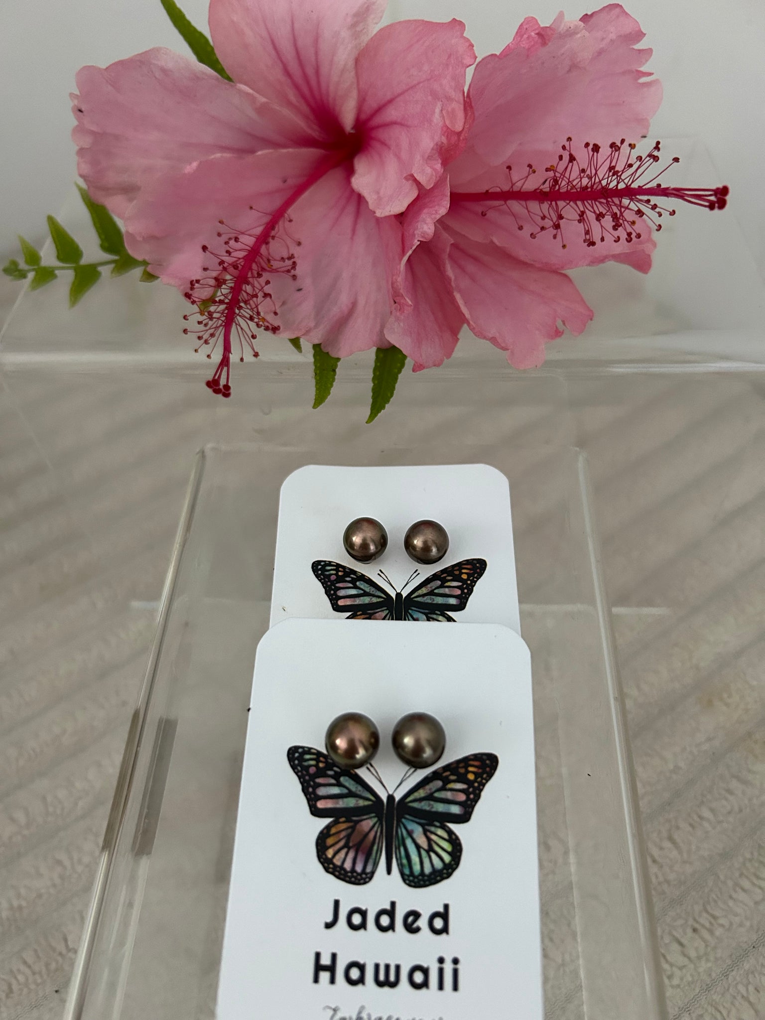 These lovely 9MM chocolate Tahitian pearl stud earrings will be your new favorite pair. An everyday classic and personal favorite.