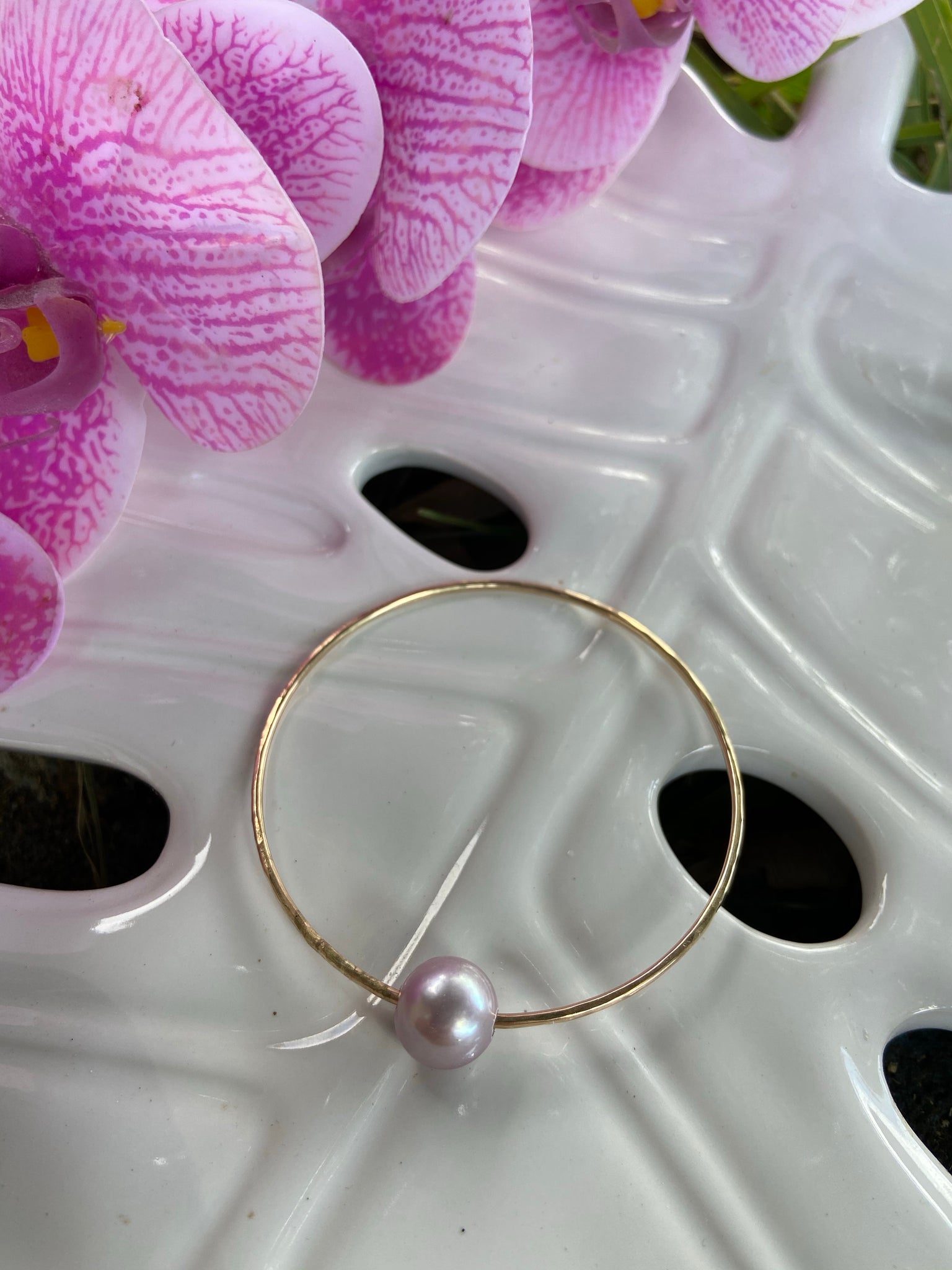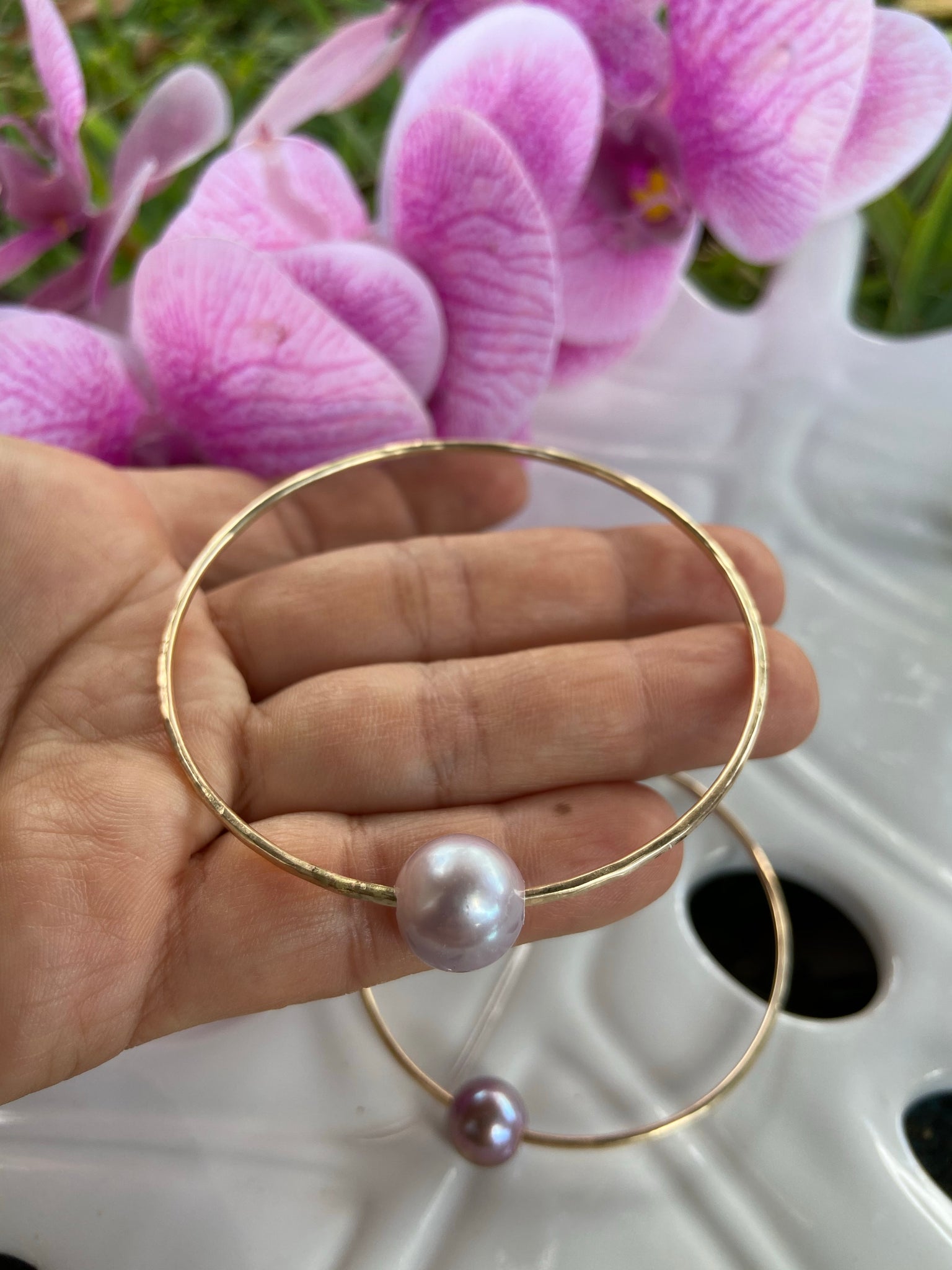 Only 3 available at this price. Beautifully, hand crafted Edison pearl bangles. Made with 14k gold filled wire, hand hammered for texture and shine. All 3 are size 71/2 exact! All sales are final so please measure correctly.