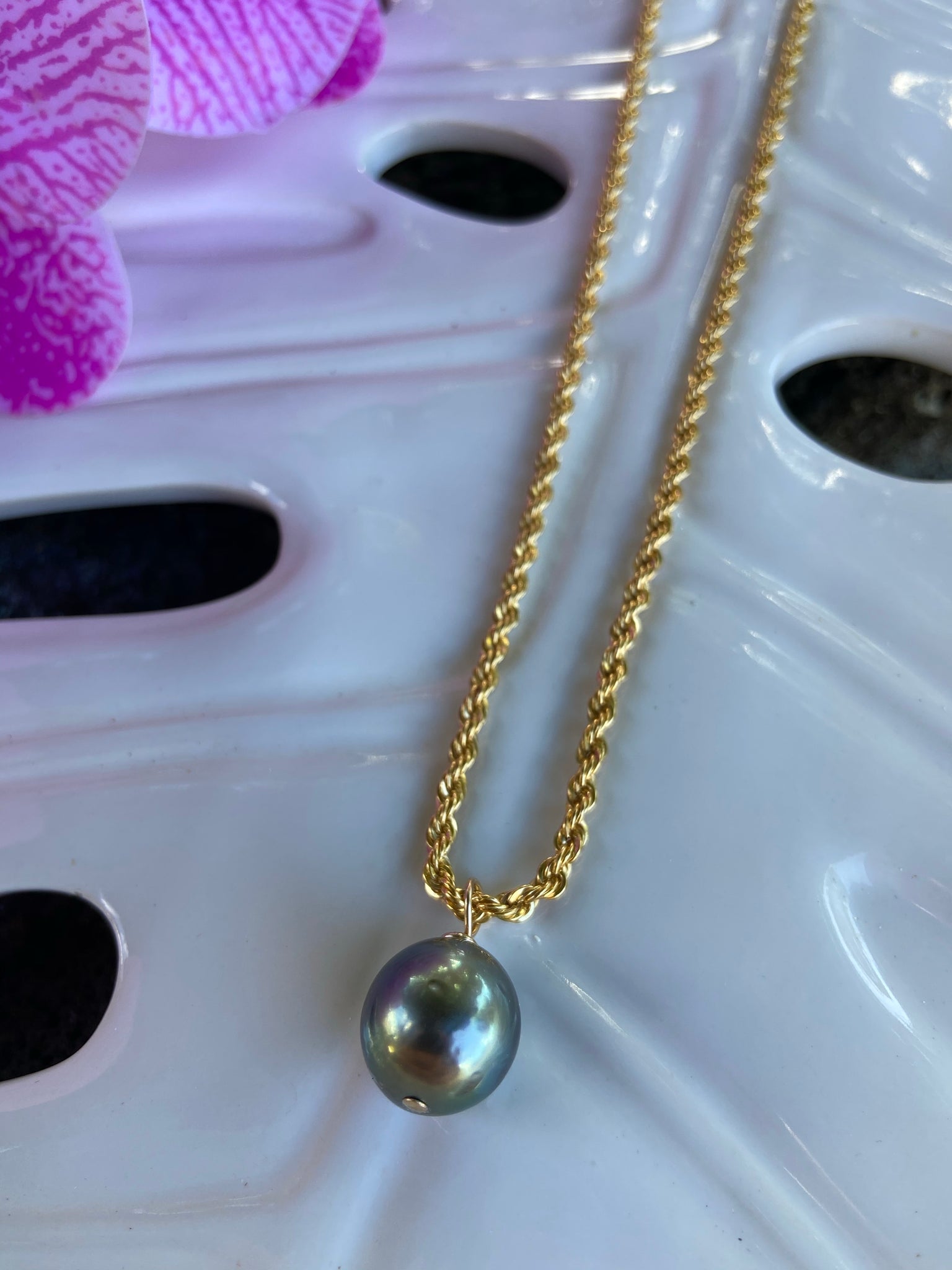18” chain 14k gold filled (not plated). Large 14mm Tahitian pearl.
