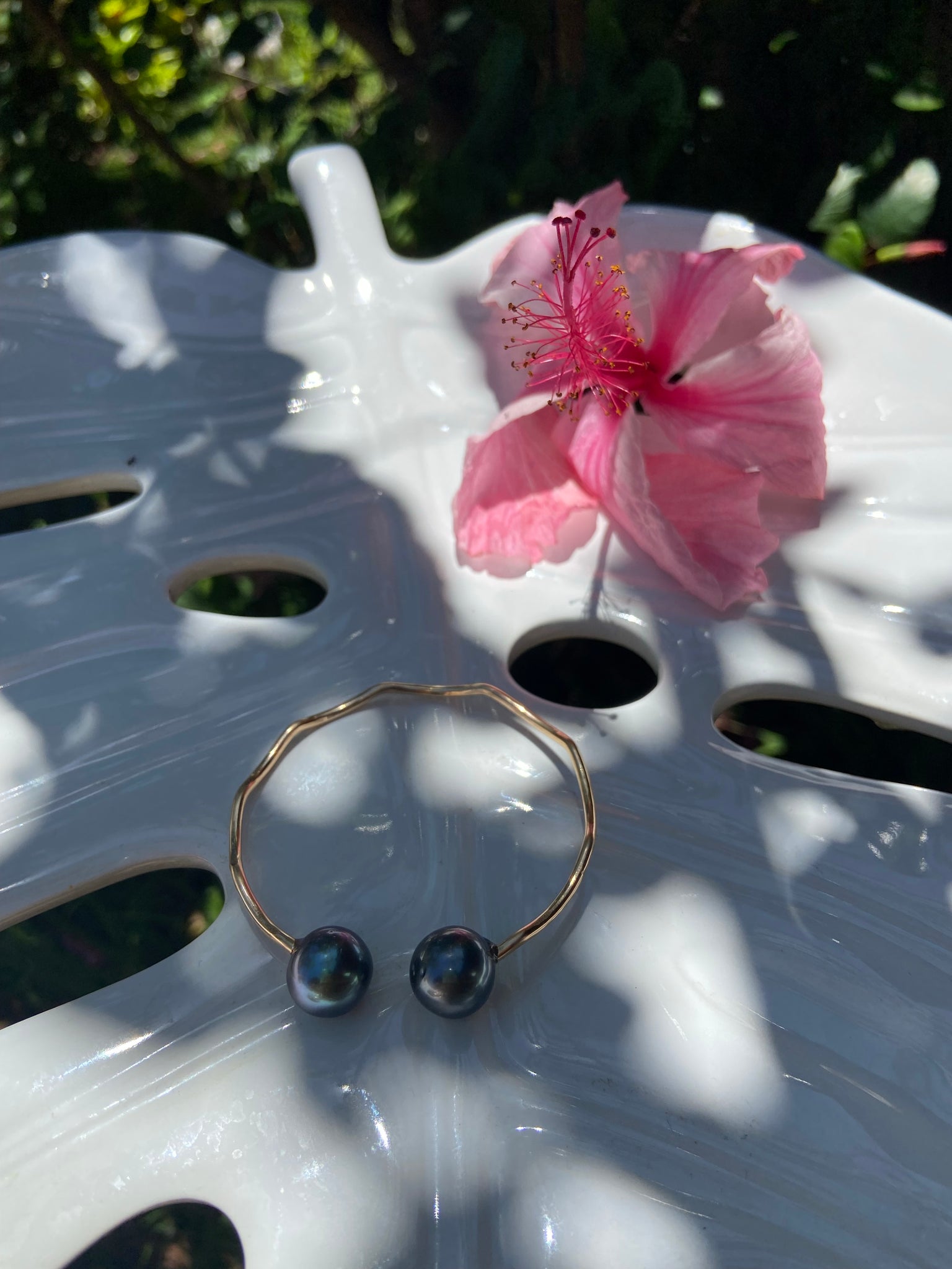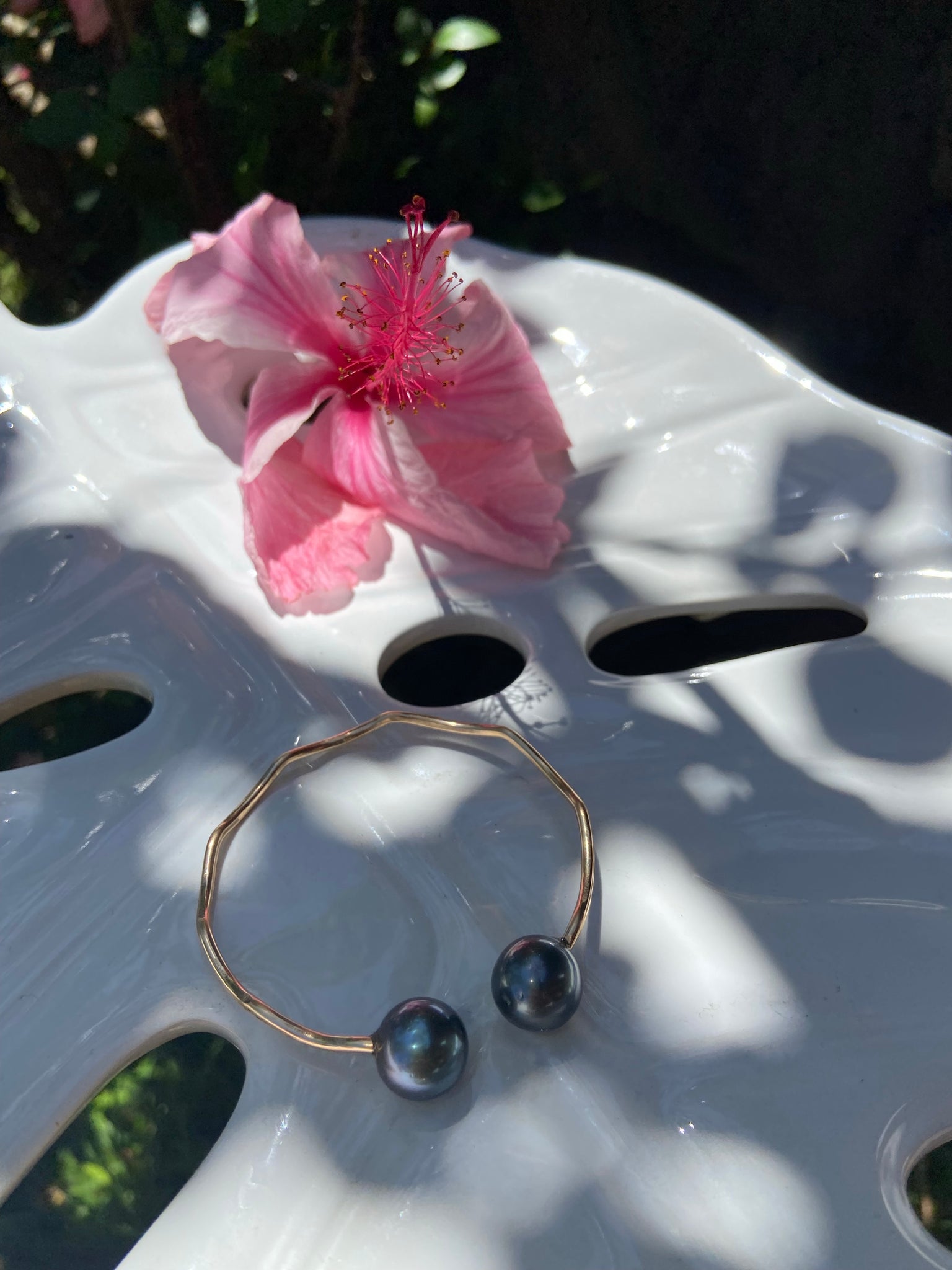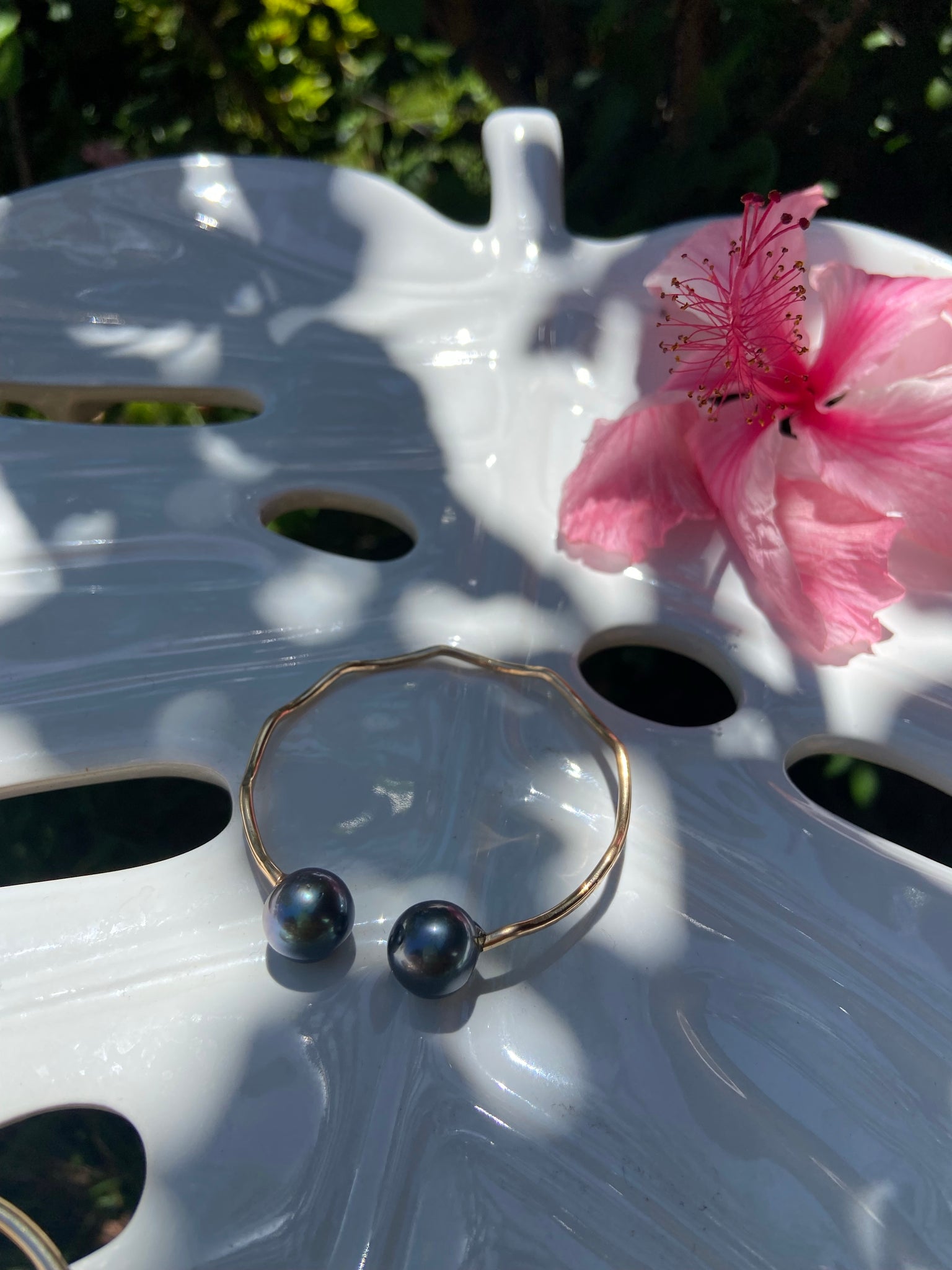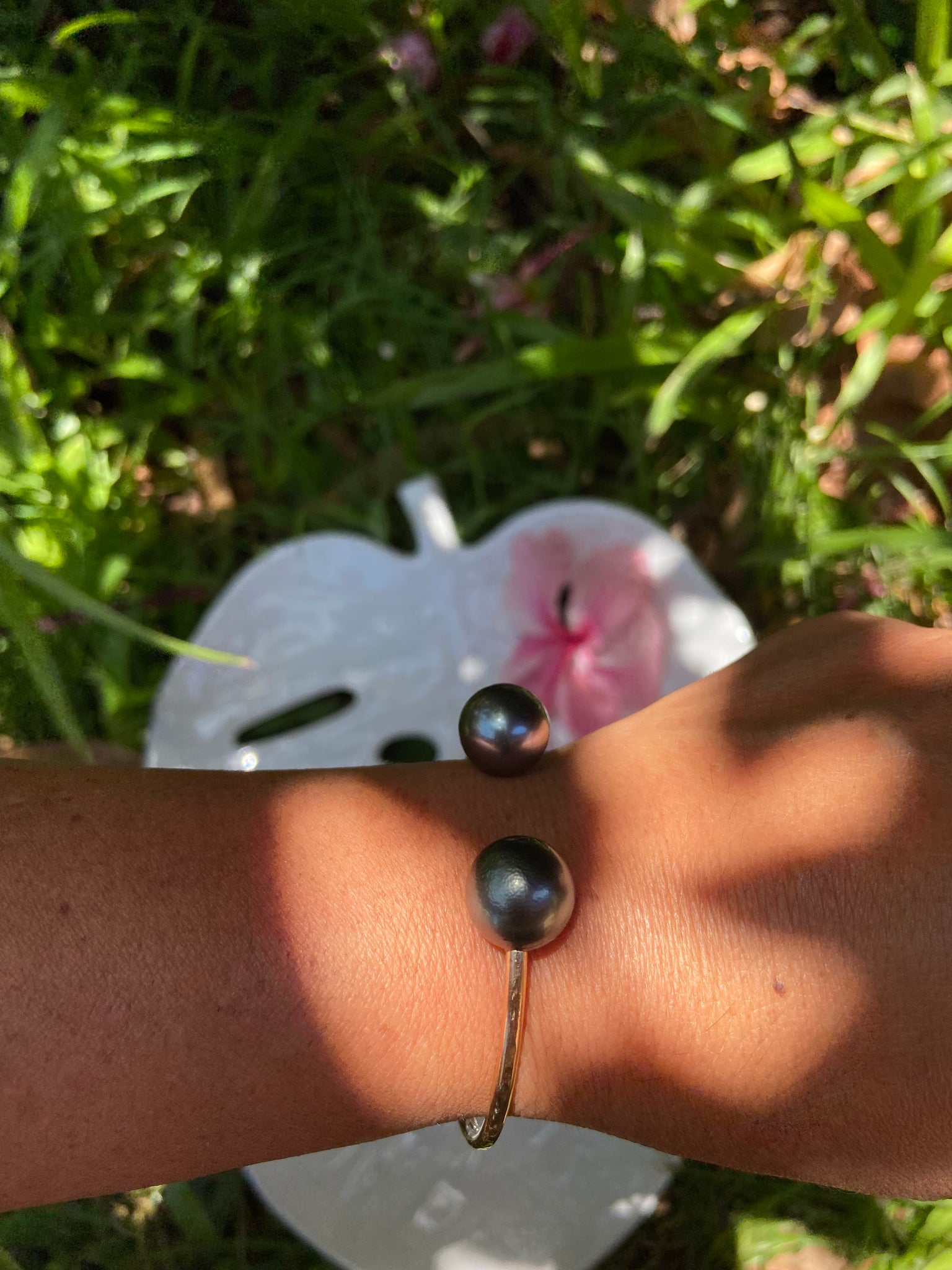 Tahitian pearl cuff. 12 gauge, 14k gold filled wire, hand hammered for texture and shine. Wave design.