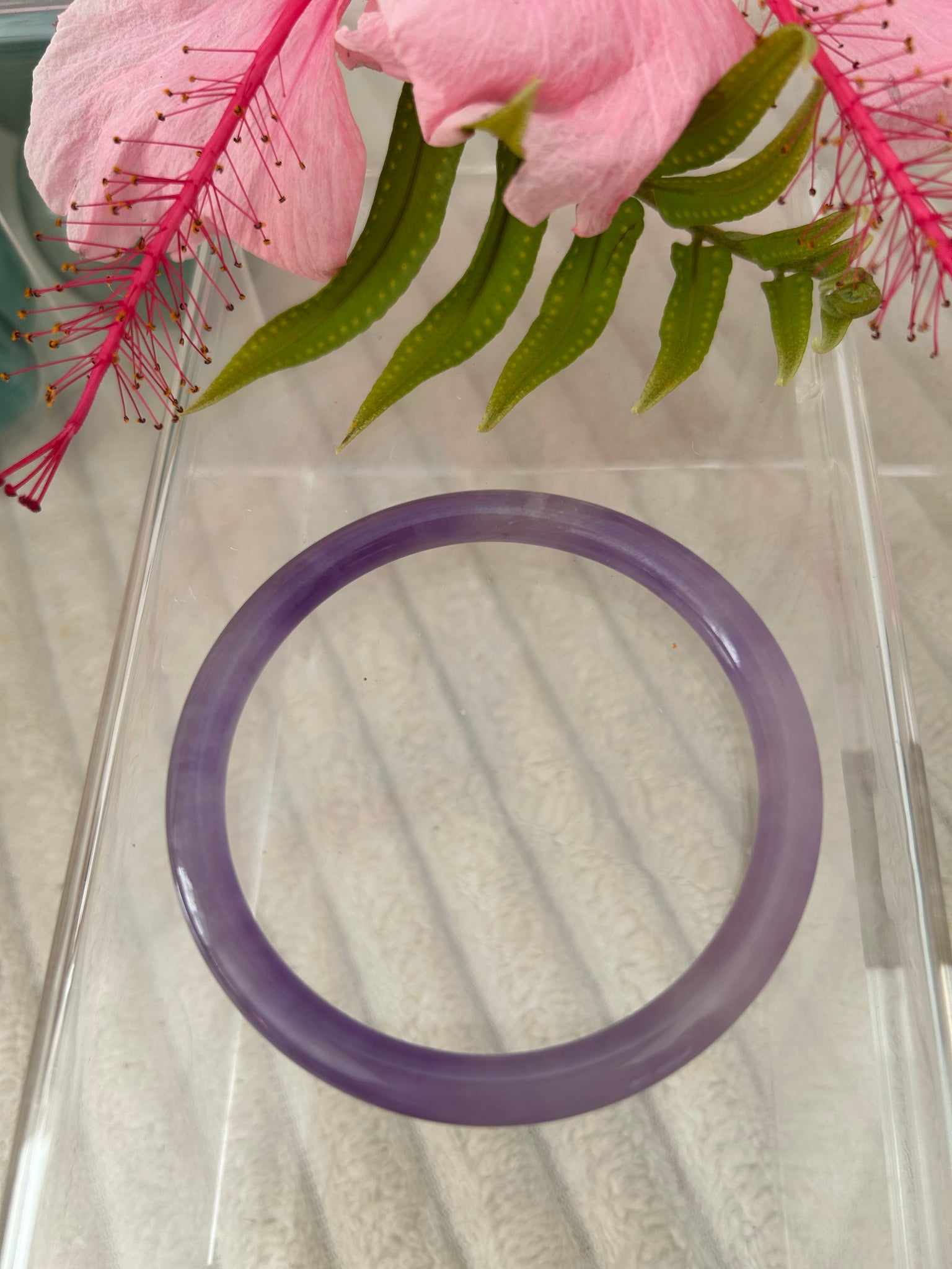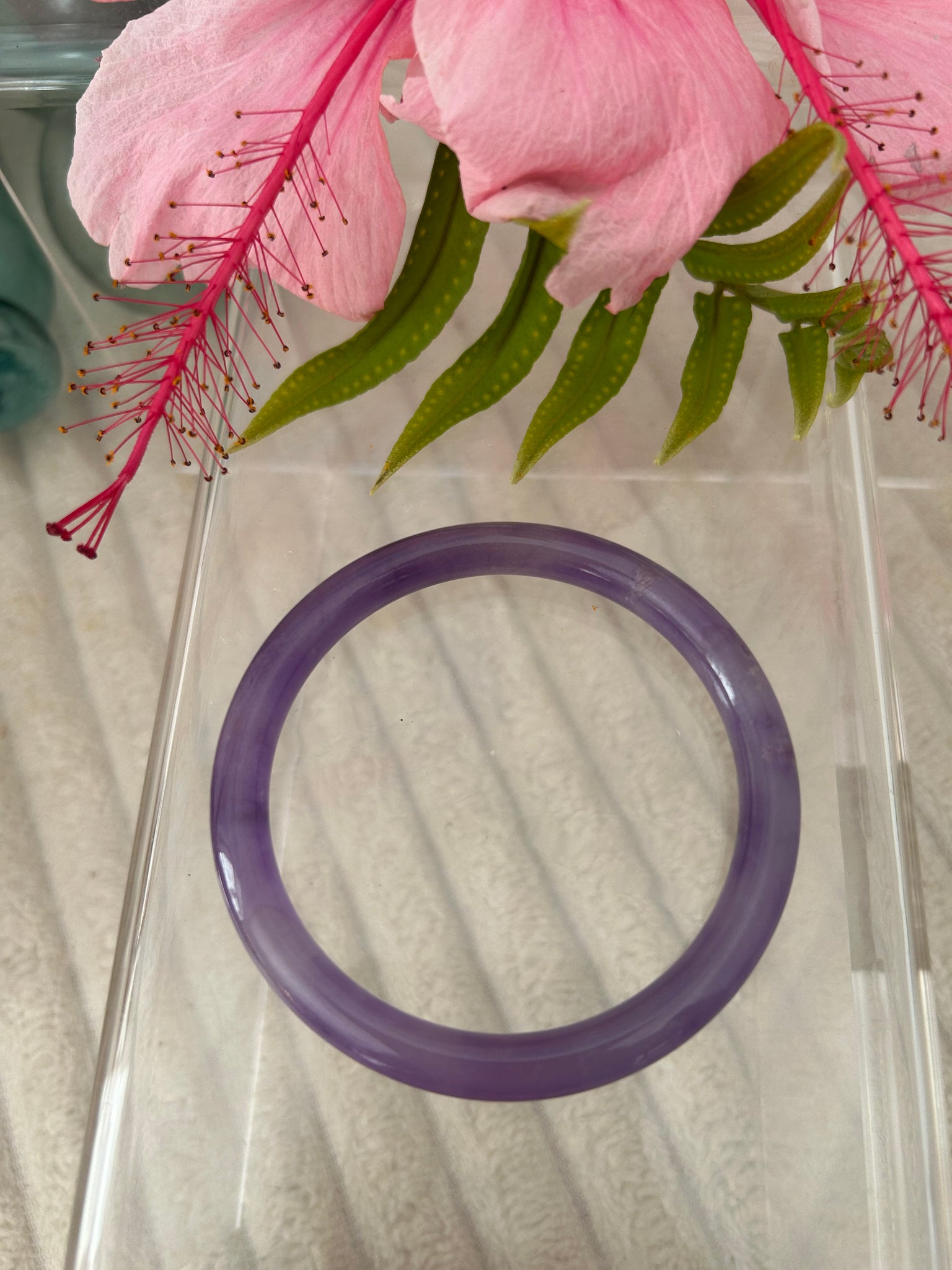 Adorn yourself or someone you love today in one of these beautiful lavender jade bracelets. These are a thin style jade approximately 1/4” thick.