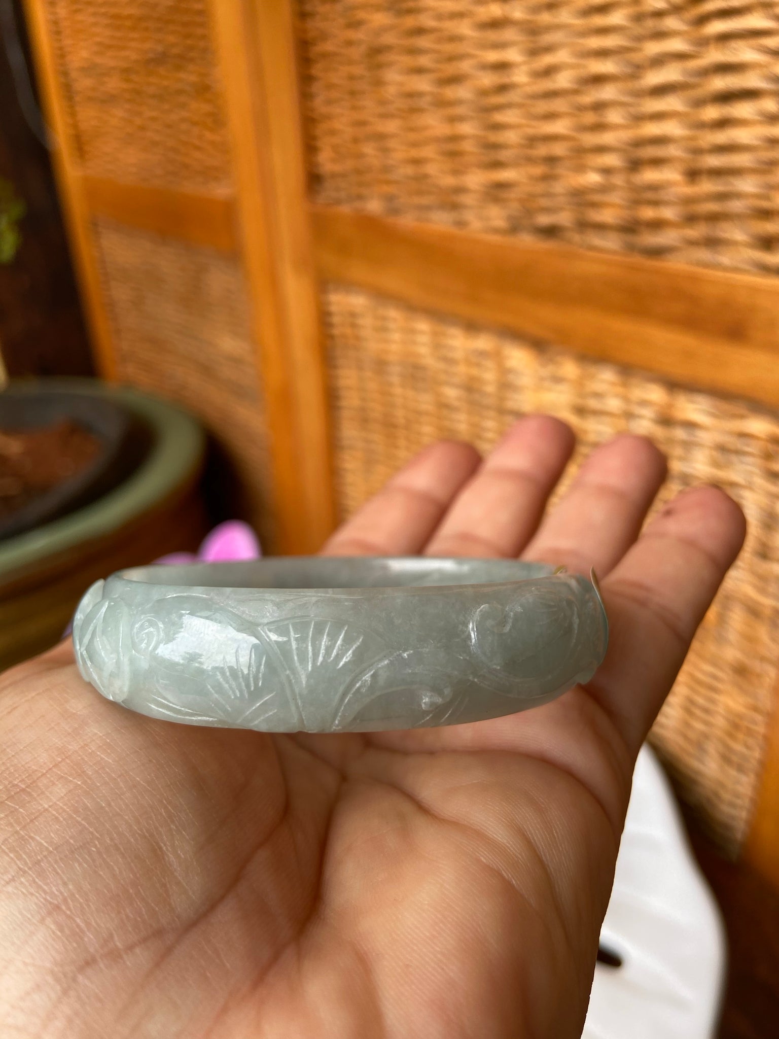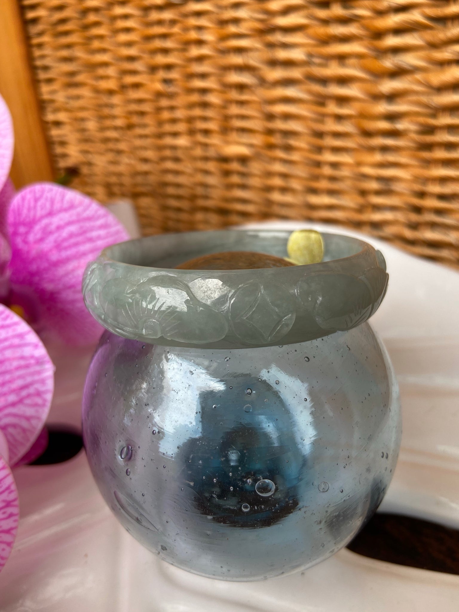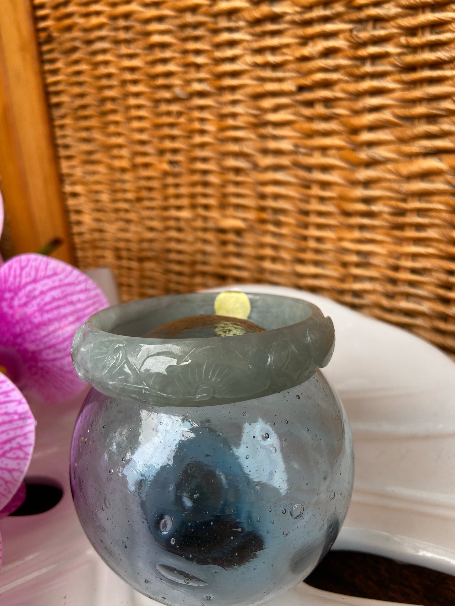 Hand carved green with flowers, vines and Chinese symbols for good luck and fortune. Vintage 1970’s.