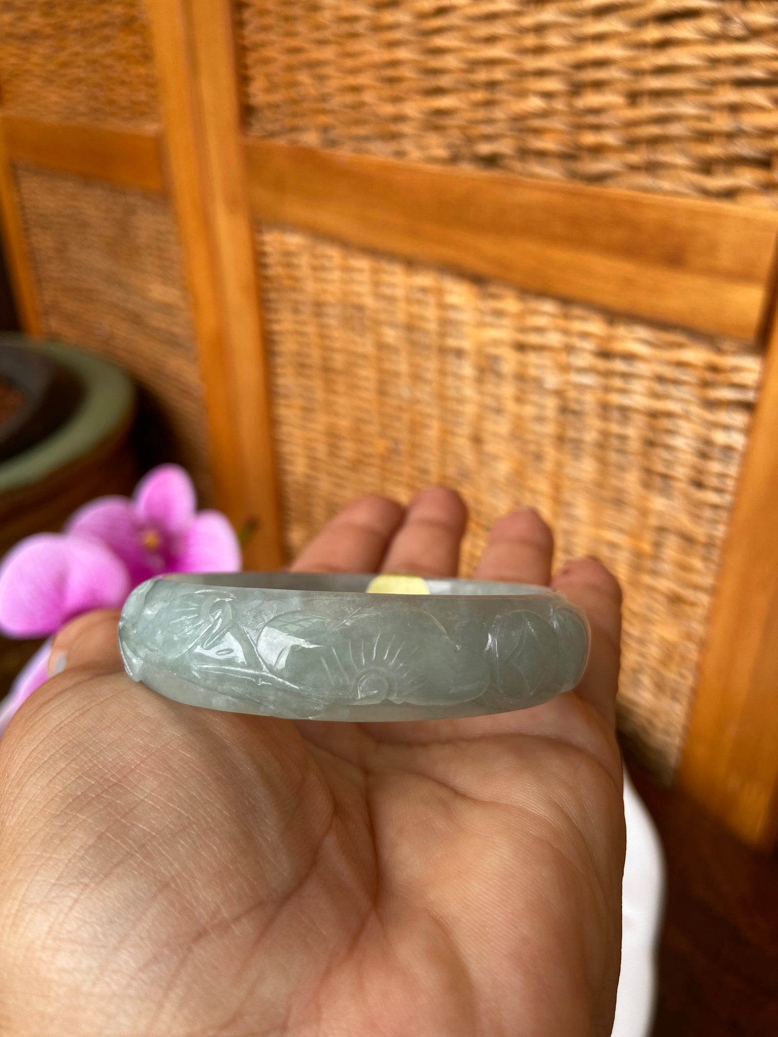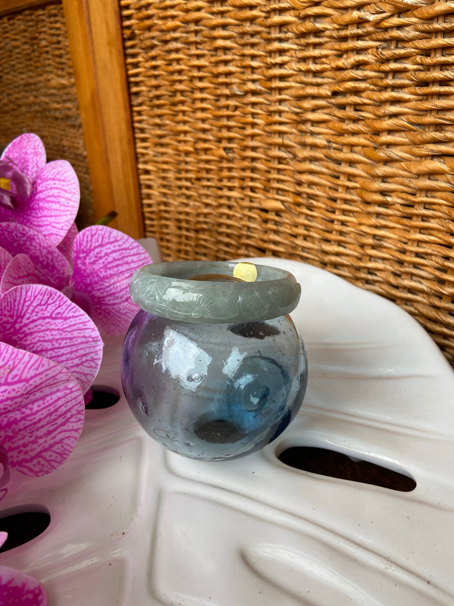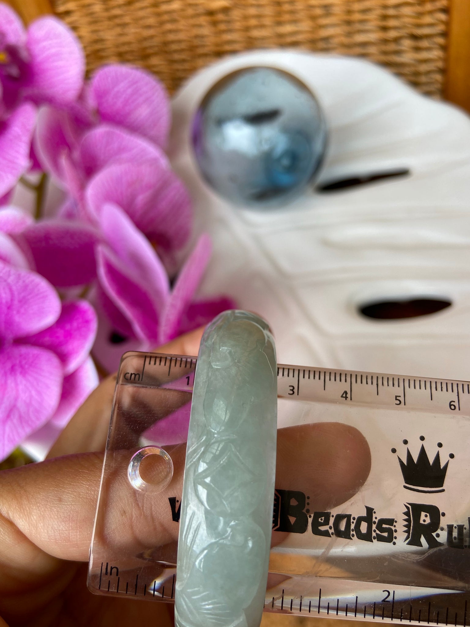 Hand carved green with flowers, vines and Chinese symbols for good luck and fortune. Vintage 1970’s.